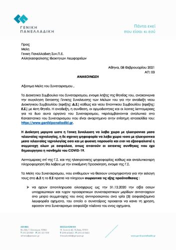 ΑΝΑΚΟΙΝΩΣΗ ΣΥΓΚΛΗΣΗΣ ΕΚΤΑΚΤΗΣ Γ.Σ. ΓΙΑ ΔΙΕΞΑΓΩΓΗ ΑΡΧΑΙΡΕΣΙΩΝ